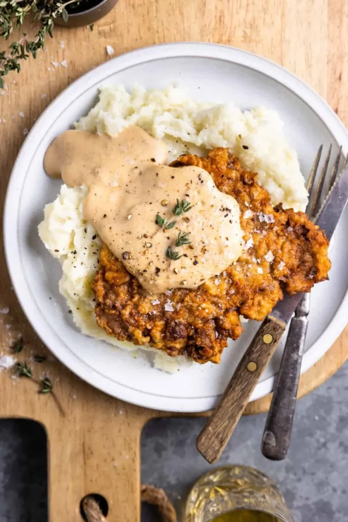 First of all, it’s pure comfort food perfection. Crispy steak, seasoned breading, and gravy made from the same pan? That’s efficiency and flavor working together. It looks impressive but doesn’t require fancy skills—just confidence and hot oil.
