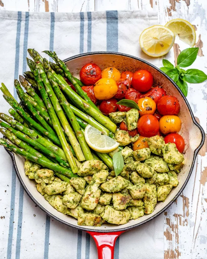 This recipe offers a great balance of lean protein and nutrient-rich vegetables. Chicken provides protein to keep you full, while asparagus delivers fiber, vitamins, and antioxidants. Using pesto adds healthy fats from olive oil and nuts. It’s a lighter dish that still feels satisfying and nourishing.