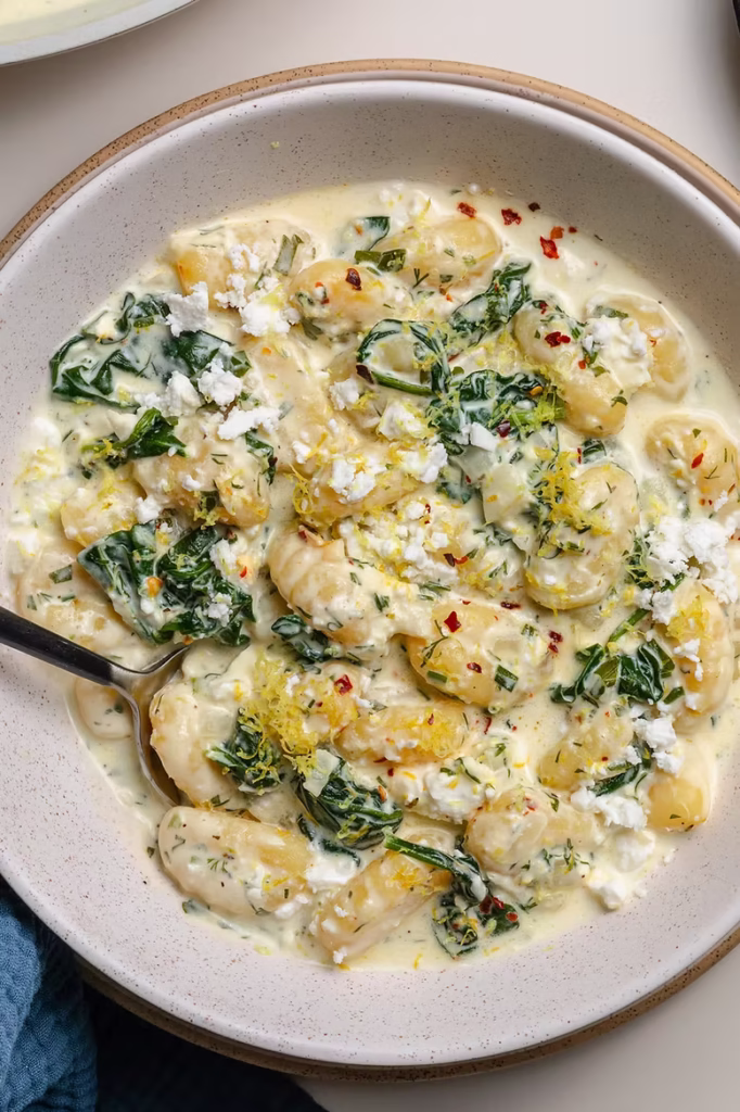 Soft gnocchi, creamy sauce, fresh greens, and salty feta combine into a dish that’s perfect for busy weeknights or relaxed dinners at home.