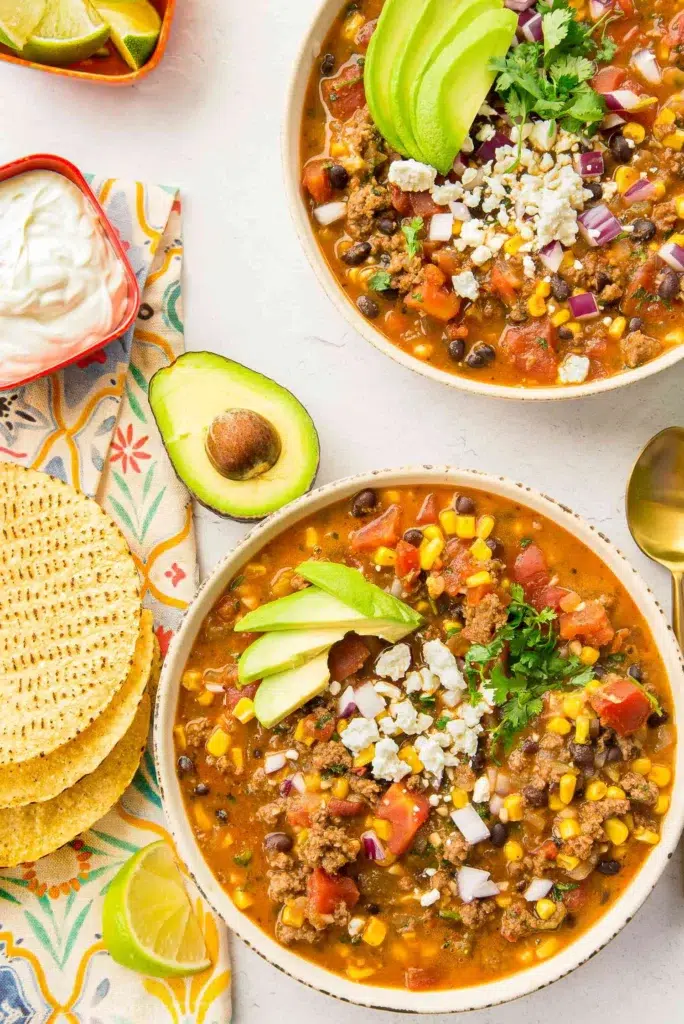 Eight-Can Taco Soup is packed with protein and fiber from beans and meat. The tomatoes provide antioxidants like lycopene. Because it’s filling, it helps with portion control. You can also make it lighter by using lean meat or skipping meat entirely.