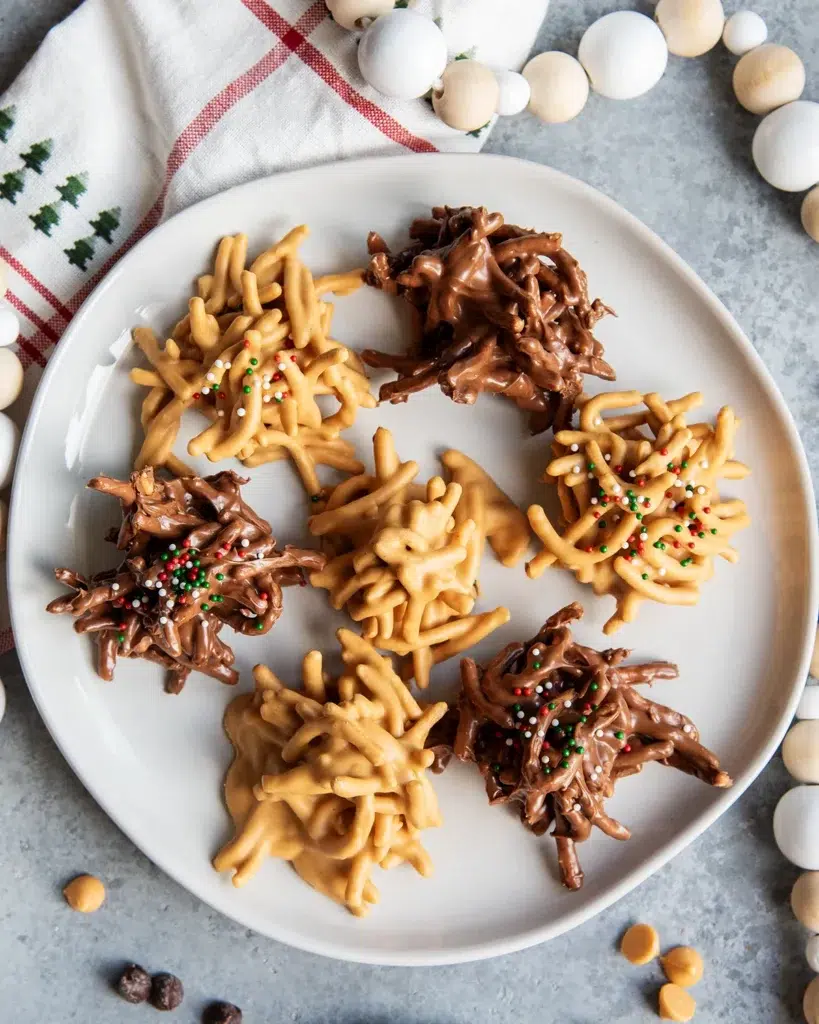 What really makes haystack cookies shine is their no‑bake simplicity and irresistible texture. The combination of melted chocolate and crunchy noodles or oats creates a unique bite.