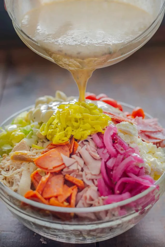 - Make the Italian-style dressing mix: In a bowl, whisk together mayonnaise, Italian dressing, and Dijon mustard until smooth. Add a pinch of salt and some black pepper. Taste-adjust if you like it tangier or creamier.