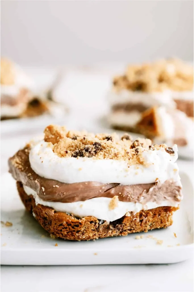 This dessert shines because of its distinct layers that blend texture and flavor perfectly. The cookie base adds a familiar, comforting bite, while the creamy layers keep everything soft and rich. Chocolate chips run through each layer, so you never miss that classic flavor. It’s nostalgic, satisfying, and easy to customize.