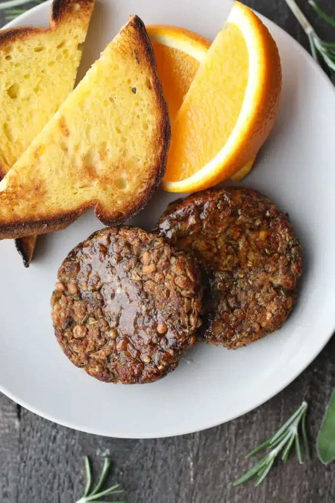 These patties shine because they’re hearty, well-seasoned, and incredibly versatile. The spice blend delivers that classic sausage flavor without being overpowering. They cook up beautifully in a skillet and hold their shape without crumbling.